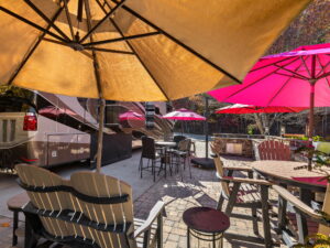 Enjoy the stunning seasonal colors and gentle mountain air from sun-dappled seating areas, or enjoy nearby amenities including the clubhouse, pools, fitness center, pickleball courts, and scenic walking trails.