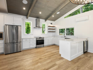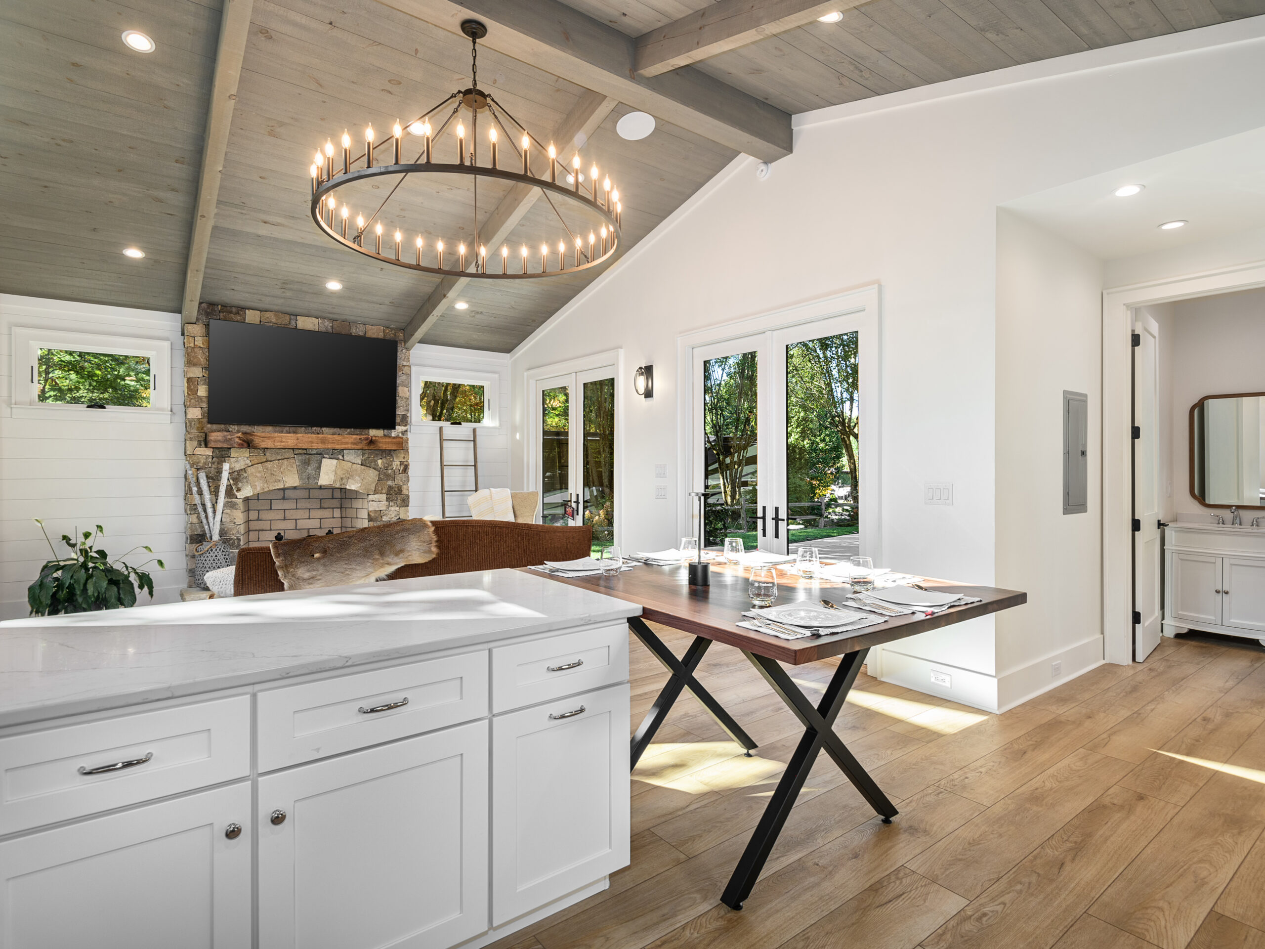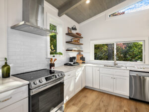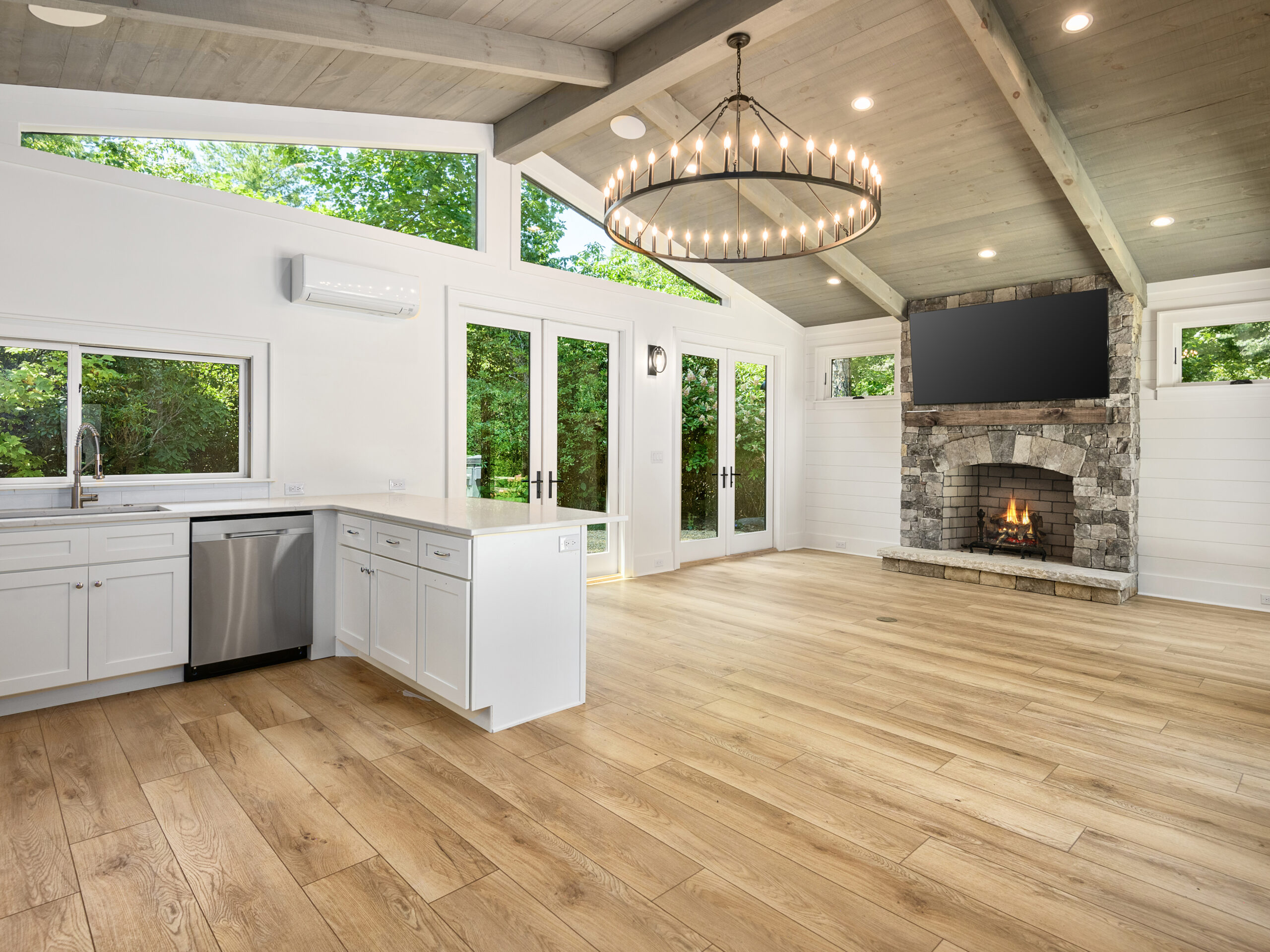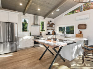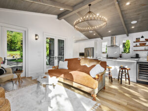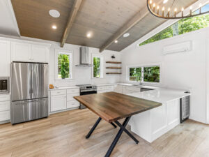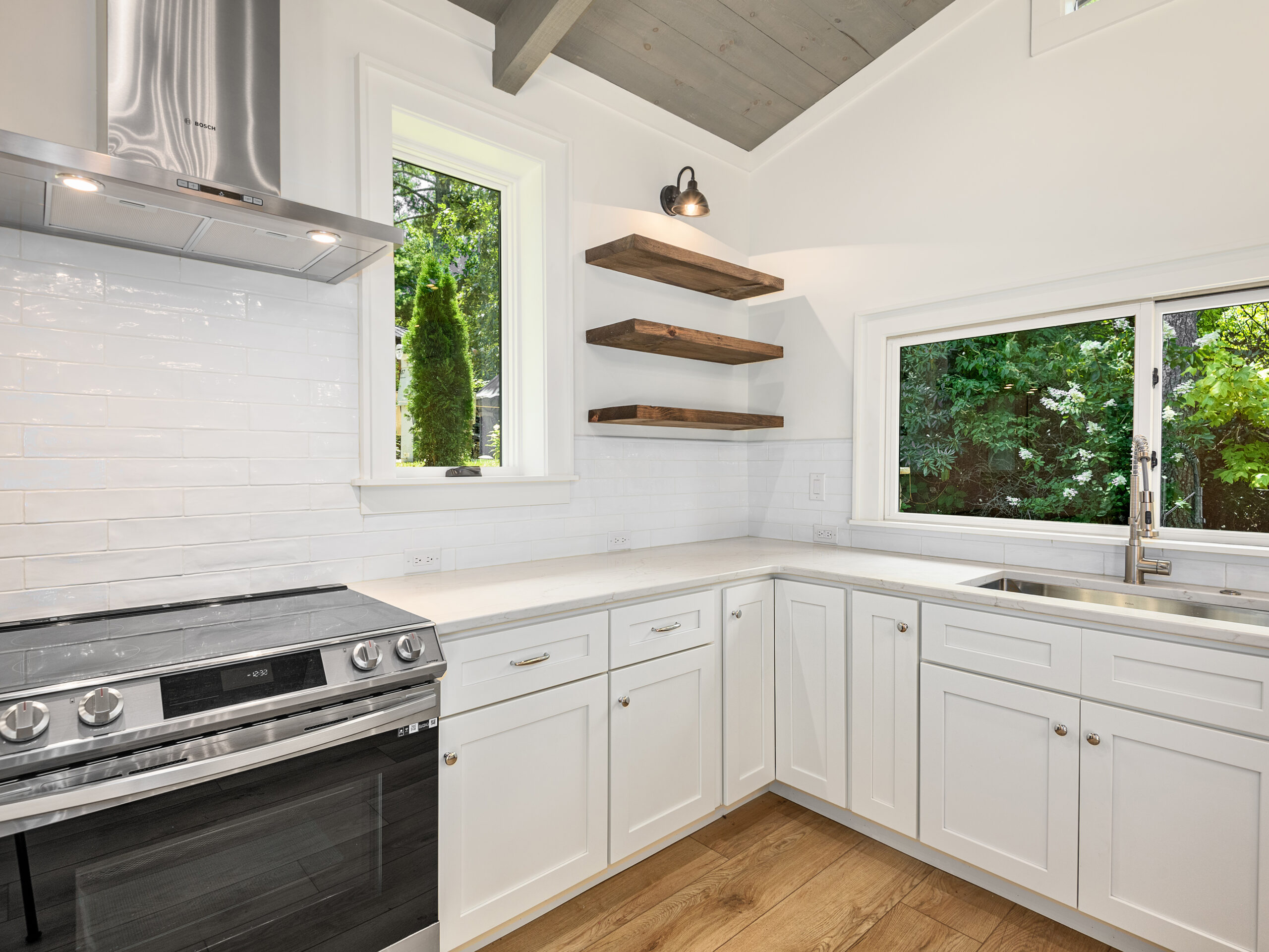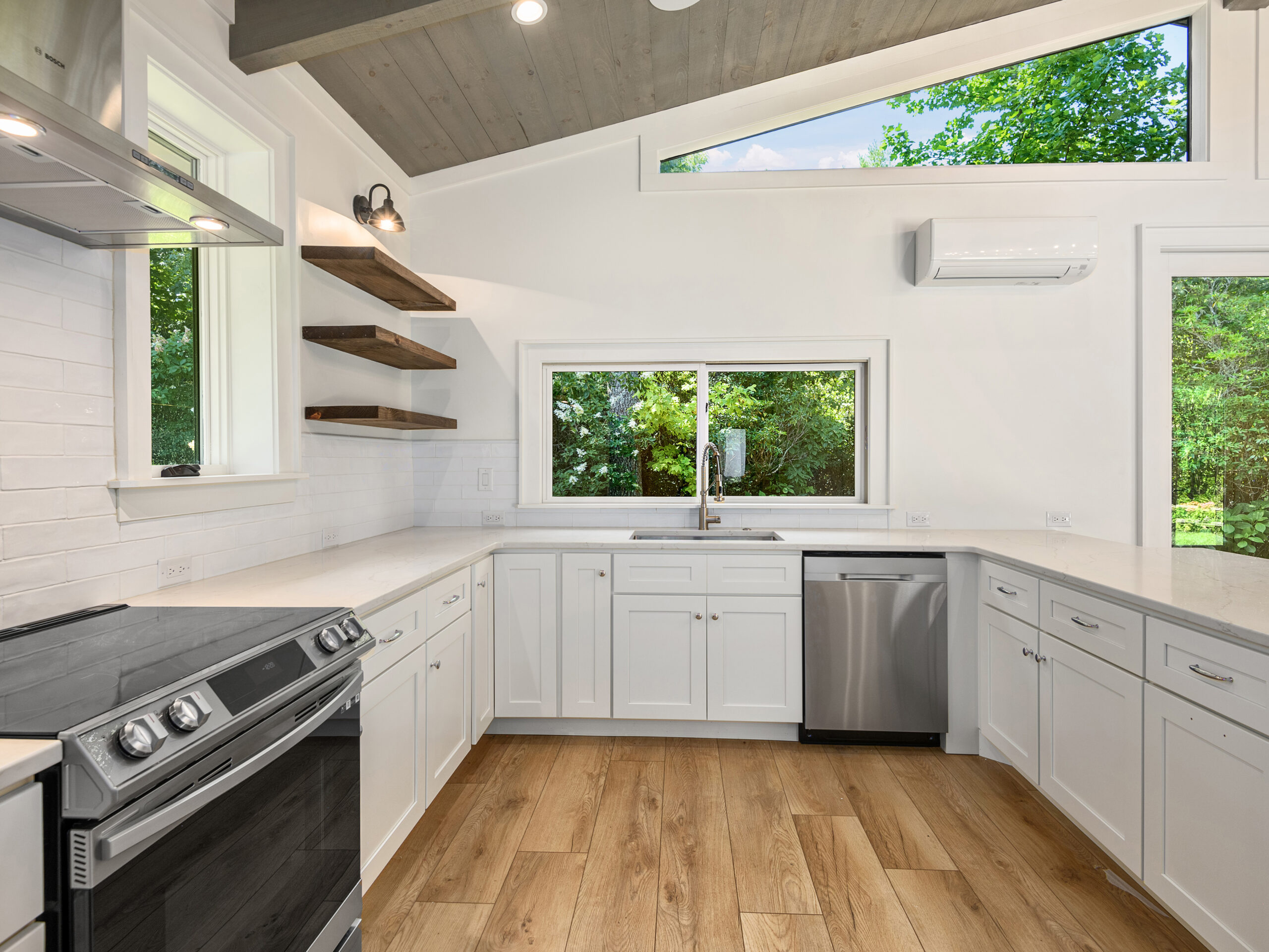 Welcome to your bright, modern mountain escape where timeless design meets inviting warmth—and a space that also offers excellent rental potential. This cottage features soaring vaulted ceilings and walls of glass that flood the interior with natural light, creating an elegant, airy atmosphere guests and owners alike will love. The chef’s kitchen blends function and style with bespoke finishes, clean white subway tile, and stylish floating shelves—perfect for everything from quiet mornings to memorable gatherings.