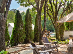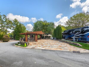 The sale includes a full set of quality furnishings—seating, tables, umbrellas, and storage—allowing you to enjoy the site immediately. Surrounded by mature trees and lush landscaping, this flat, private setting offers a peaceful retreat while remaining open and welcoming. With its exceptional layout, high-end finishes, and turnkey appeal, this site delivers the very best of Mountain Falls outdoor living from day one.