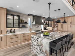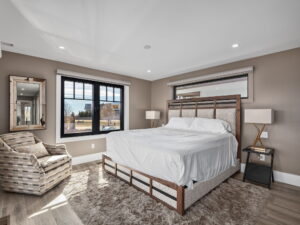 Upstairs, the private owner’s suite offers breathtaking vistas, spa-inspired finishes, and direct balcony access for sunrise coffee or sunset reflections. Every detail has been thoughtfully crafted—warm wood flooring, modern iron railings, and rich textural contrasts blend comfort and sophistication.