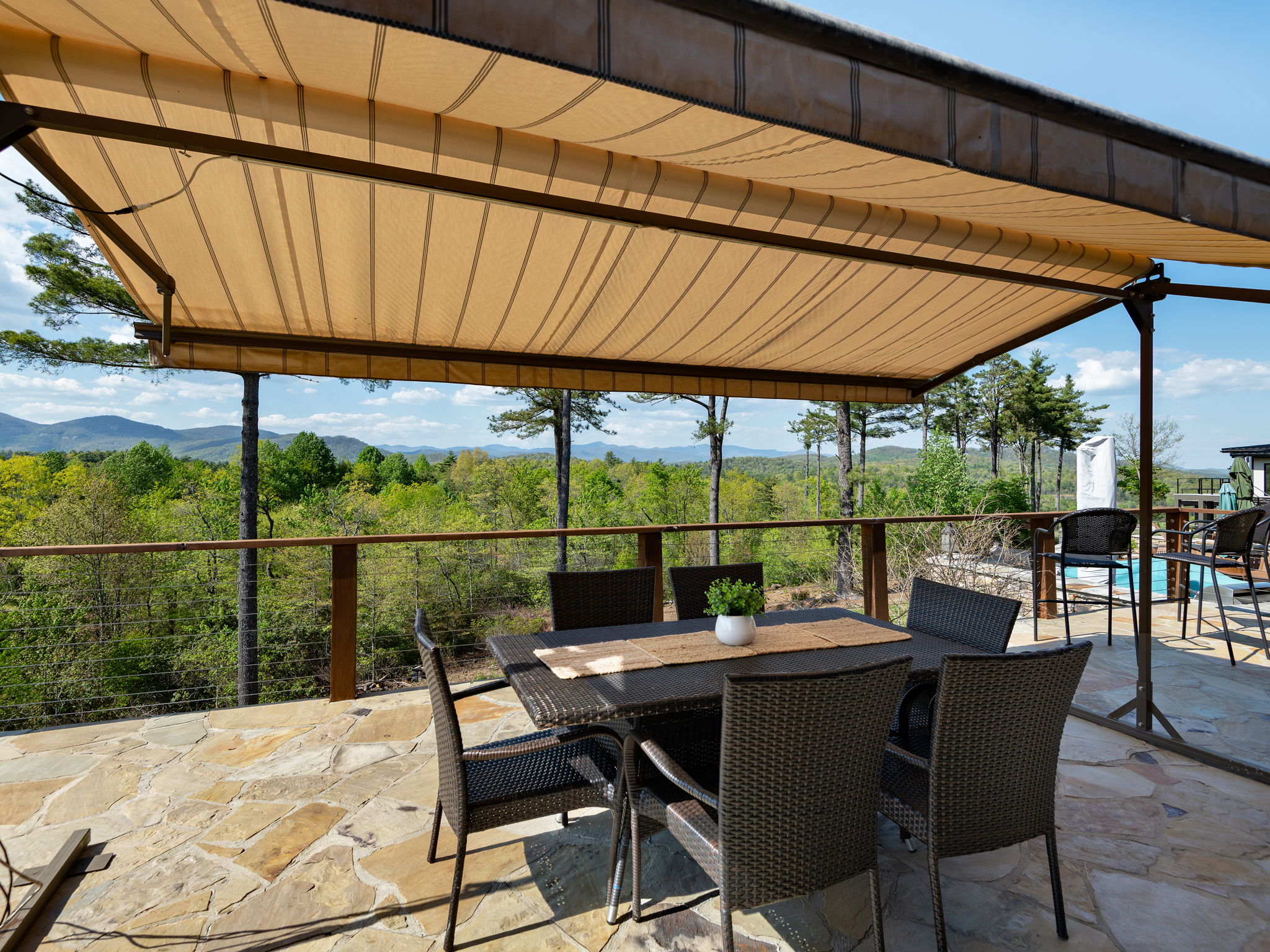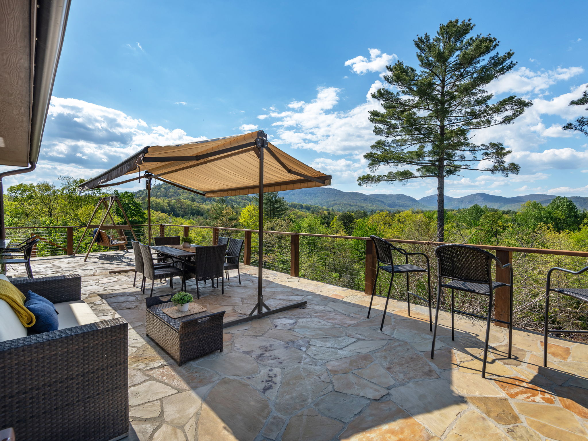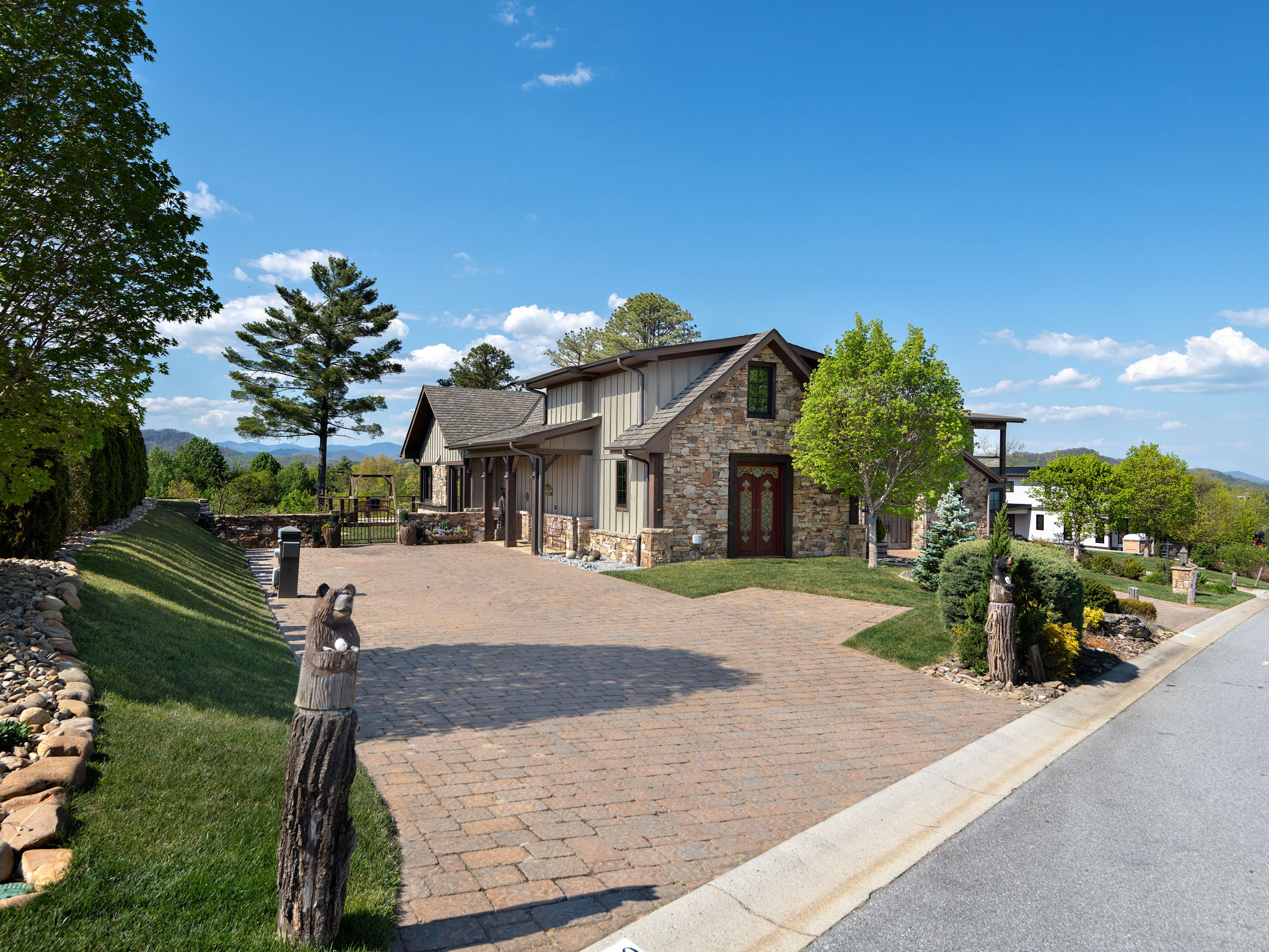 Perched to capture sweeping long-range views of the Blue Ridge Mountains, this beautifully crafted mountain retreat blends timeless materials with elevated outdoor living. A welcoming stone entry and expansive paver drive set the tone, leading into a coach house designed to embrace both comfort and scenery at every turn.