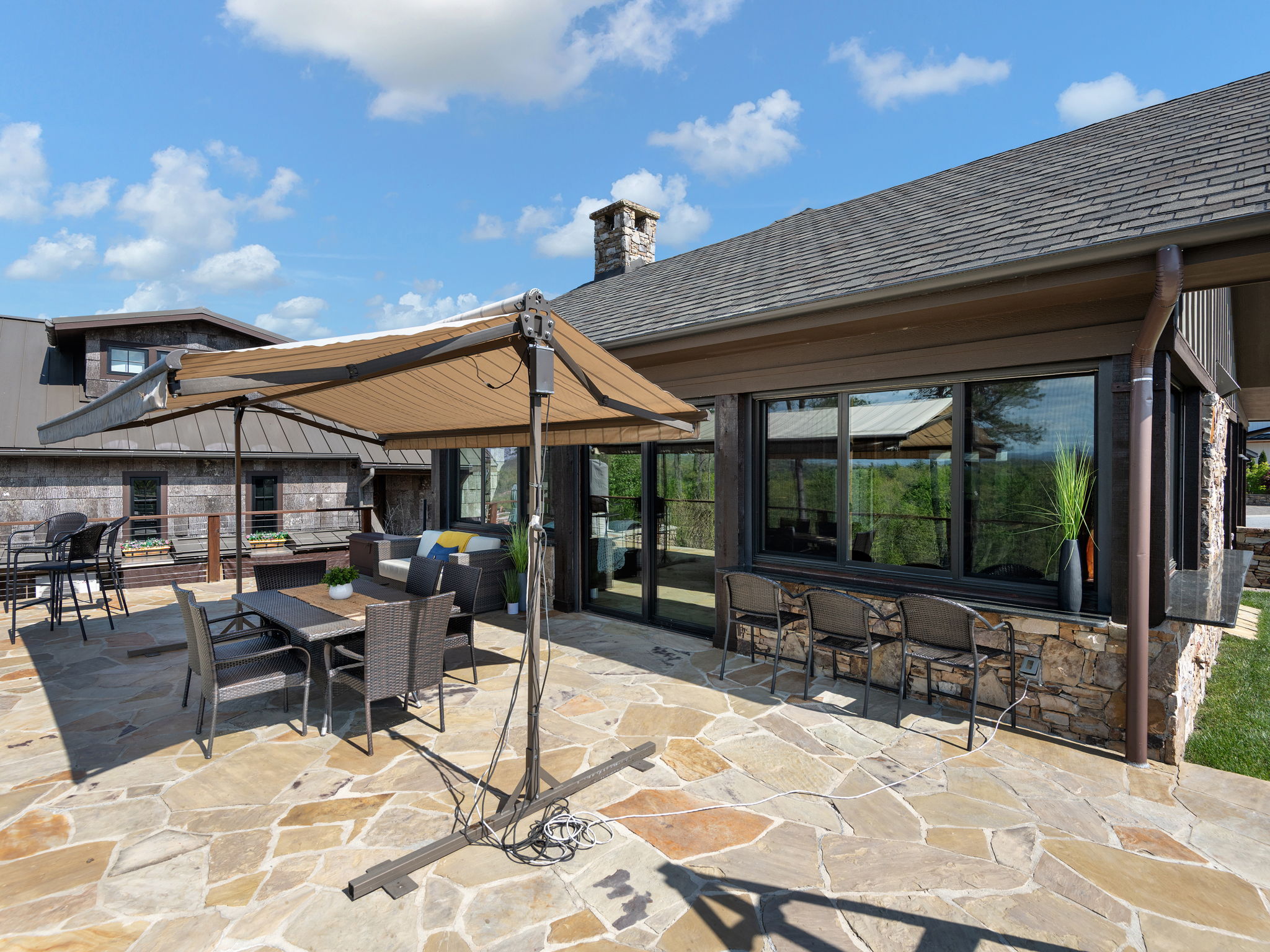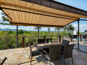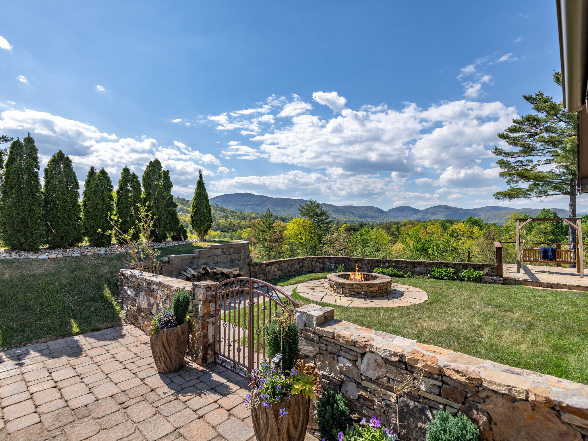 From the covered patio to the custom stonework and private gated courtyard, every detail has been thoughtfully designed for entertaining or simply enjoying the peaceful mountain backdrop.