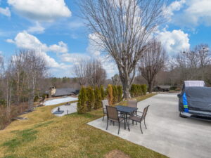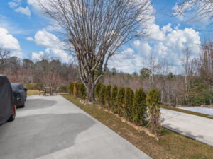 Mature trees and thoughtfully placed evergreens frame peaceful mountain and wooded views, creating a serene setting with a sense of openness and privacy. This buildable site offers approximately 512 square feet of customizable space, providing the perfect opportunity to create your dream outdoor retreat or add functional square footage tailored to your lifestyle.